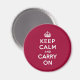 Este design "Manter Calmo e Continuar" clássico apresenta texto branco em um fundo vermelho crítico.