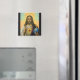 Este belo ímã mostra uma ilustração do Cristo de Jesus segurando o mundo em suas mãos. Acima dele estão as palavras, "Cristo Rei". Aproveite seu novo Cristo, o imã Rei!