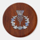 Um cromo prateado como um design de aplicador escocês num fundo de impressão de grão de madeira castanho típico de mogno clássico para um presente personalizado de excelente. Designs de bordados estão disponíveis em uma seleção de opções populares de cor. Use o link "Perguntar a este Designer" para entrar em contato conosco com suas solicitações especiais de design ou para obter assistência com seu projeto de personalização.