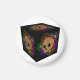 Padrão de burst floral e crânio de aquarela com efeitos de halftone aplicados à imagem. Ímanes personalizados. Ideia de presente para adultos e crianças!