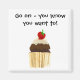 Uma imã de geladeira quadrada branca com um delicioso cupcake de chocolate com creme e um morango no topo, feita de um design de colagem de papel pintado à mão por Judy Adamson. Esta imã de geladeira tentará qualquer um de dieta! T-shirt e cartão de saudação com o mesmo design de cupcake também disponíveis.