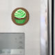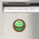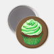 Uma ilustração detalhada de um cupcake de chocolate escuro com glacé de horta verde pastel