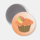 Um fundo laranja sombreado apresenta um cupcake laranja fosco com fatias de fruta de limão, limão e laranja.