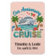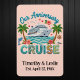 Tropical cruise anniversary design featuring a ship, palm trees, and floral accents. Personalized anniversary stateroom door marker with names and date for a romantic celebration. Please note: Not all ship's doors are magnetic. We cannot guarantee your door will be magnetic. Please check with your travel agent, the cruise line, or via forums.