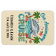 Tropical cruise anniversary design featuring a ship, palm trees, and floral accents. Personalized anniversary stateroom door marker with names and date for a romantic celebration. Please note: Not all ship's doors are magnetic. We cannot guarantee your door will be magnetic. Please check with your travel agent, the cruise line, or via forums.
