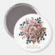 Imã Custom Rose Gold Floral Monogram Round Magnet