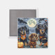 Libere o espírito assustador com esta design sombria do Dia das Bruxas apresentando um bando de cachorros sob um céu escuro e iluminado, cercado por morcegos voadores e abóboras brilhantes. Perfeito para aqueles que amam um toque de diversão terrível com seus amigos peludos!