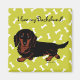 Cartoon de cachorro único e engraçado criado por Naomi Ochiai do Japão. Bons e engraçados artigos de presentes de desenho animado Dachshund para fãs Dachshund!! Design de desenho preto e bronzeado de Dachshund. Ele tem olhos bonitos! Fundo do padrão ósseo. Você pode personalizar texto e muito mais!