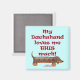 Quando o amor é medido no Doxie Meter, o amor é longo! Design de diversão para o amante Dachshund com um desenho animado Dachshund com linhas de medida ao longo de seu corpo marcadas por pequenos corações vermelhos. Design original de Christie Black of Creations do Coração.