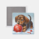 Imã Dachshund Puppy Adorável Brincando Com Bola Vermel