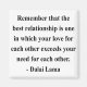 "Lembre-se de que a melhor relação é uma em que seu amor um pelo outro excede sua necessidade um pelo outro." - Dalai Lama.