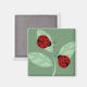 O Magnet Personalizado tem duas belas joias vermelhas em folhas com fundo verde.
