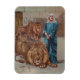 Imã de geladeira com uma ilustração do livro infantil vintage de Deus protegendo Daniel de danos no covil do leão.