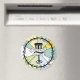 Imã personalizada com um tema de golfe de disco e fundo de pop de arte lacrimogênea e amarela.