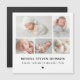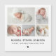 Ímã de cartão moderno com 5 fotos em uma grade exibindo suas fotos favoritas de recém-nascido com nome e estatísticas de nascimento.