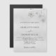 Um convite de casamento moderno, elegante e minimalista. Fundo metálico de aspecto fino prateado decorado com florais prateados. Personalize e adicione seus nomes e detalhes do casamento. Letras pretas coloridas.