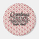 Imã de geladeira divertida. A cozinha da vovó - boa comida servia diariamente com uma colher cheia de amor. Fundo do corações vermelho.