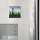 Uma imã de geladeira com uma maravilhosa foto colorida das pedras em pé do Callanish e Aurora Verde e Roxo altamente ativa