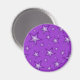 Design moderno com estrelas roxas e brancas "brilhantes" sobre fundo roxo. Imã de geladeira com um design personalizável para você personalizar com seu próprio texto, imagens e ideias. Note que esta é uma imagem impressa criada usando fotografias originais e técnicas digitais, que ela não brilha ou contém faíscas reais.