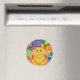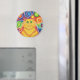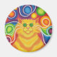 Querida Groovy! Um gato listrado amarelo e laranja com bigodes giratórios e um fundo de arco-íris psíquico com padrão. Imã de geladeira com um design personalizável amarelo, laranja, vermelho, azul, verde, rosa, roxo e branco para você personalizar com seu próprio texto, imagens e ideias. Um desenho de lápis colorido digitalmente melhorado por Jess Perry.