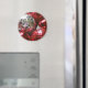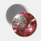 Uma coleção de bolhas vermelhas e prateadas de Natal. Imã de geladeira com um design personalizável vermelho, prateado, preto e branco para você personalizar com seu próprio texto, imagens e ideias. Criado com uma fotografia original e técnicas digitais por Jess Perry.