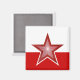 Design moderno com uma estrela vermelha e branca "brilhante" sobre fundo branco e vermelho. Imã de geladeira com um design personalizável para você personalizar com seu próprio texto, imagens e ideias. Note que esta é uma imagem impressa criada usando fotografias originais e técnicas digitais, que ela não brilha ou contém faíscas reais.