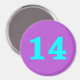 Esta é uma imã de geladeira redonda de 3 polegadas (embora sinta-se livre para personalizar qualquer um dos outros dois tamanhos redondos). Ele tem o número 14, turquesa colorida, e isso está sobre um fundo violeta. Isto é de uma coleção de ímãs numerados, numerados de 1 a 31, úteis para você em qualquer dia de qualquer mês. Por favor, veja também a coleção de ímãs cobrindo os dias da semana.