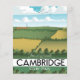 Lindo pôster de viagem de trem em estilo vintage de Cambridge "para uma pausa" com a incrível paisagem rural rolante no verão.