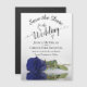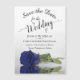 Esses belos cartões magnéticos são a maneira perfeita de informar aos seus amigos e familiares que salvem a data do seu casamento. Eles apresentam um design romântico com uma única rosa azul marinho de caule longo refletindo em uma piscina com ondas e ondulações. Clássico e elegante, o design simples inclui letras de caligrafia em script rendado.