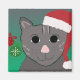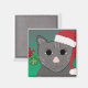 Um gato bonitinho se apunhalou nas férias com um chapéu de Papai Noel divertido e decorações penduradas no ouvido.