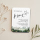 Um elegante imã de Convite para Casamento com montanhas de aquarela e pinheiros que você pode personalizar com seus detalhes.