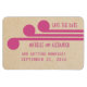 Moderna e sofisticada Quadrinha Deco Salve o Magnete Premium em cor-de-rosa fuchsia com um par de embelezamentos do círculo deco e uma textura falsa em papel, fundo digital. Esta imã salve a data de na moda é perfeita para anunciar seu casamento elegante. Fácil de personalizar, basta adicionar os detalhes do casamento nos espaços fornecidos. Clique em "Personalizar" para encontrar opções adicionais de personalização.