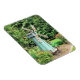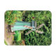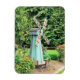Um moinho verde muito bonito como decoração em um jardim. Foto de abril de 2019 em Woodburn, Oregon.
