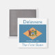 Uma imagem autêntica de qualidade superior da bandeira de Delaware, foi definida entre o nome do estado e o apelido sobre um fundo de cor de bandeira.