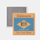 Uma imagem autêntica de qualidade da bandeira de Delaware foi definida entre o nome do estado e o apelido sobre um fundo de cor de bandeira clara.