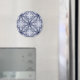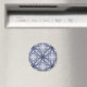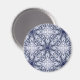 Um caleidoscópio perfeitamente detalhado em azul e branco que se parece com porcelana fina ou damasco. Este design elegante está impresso num ímã.