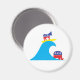 Esperando por uma Onda Azul em novembro? Se sim, então esse ímã é para você. Ele mostra o burro democrático cavalgando um prato amarelo sobre uma grande onda azul prestes a cair sobre um elefante republicano.