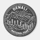Denali monoline design. The park has terrain of tundra, spruce forest and glaciers, the park is home to wildlife including grizzly bears, wolves, moose, caribou and Dall sheep.