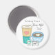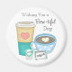 Café azul, lacado e rosa, creme e maço de açúcar desenhados à mão. Bonito para um amante de café. Desejando-lhe um dia bonito.