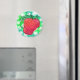 Desenho original de um morango em vários tons de vermelho rico e brilhante com tinta preta. Verdes com eclosão branca como fundo.