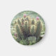 Flores cor-de-rosa suaves florescem de ramos picantes de um cacto. Os espinhos de cacto brilham sutilmente da luz traseira. Fotografia colorida de cactos no deserto de Sonoran em Scottsdale, Arizona. Personalize os ímãs decorativos do refrigerador do deserto ocidental com seu próprio texto e imagens usando a opção "Personalizar" para os presentes especiais do ímã sudoeste.