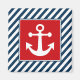 Design com temas náuticos com decoração de âncora em quadrado sobre fundo listrado a azul e a branco