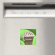Um ímã divertido com um cupcake mocha com borrachas de chocolate em um fundo verde sombreado.