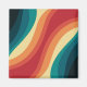 Ilustração geométrica de ondas retrorreflectoras multicoloridas com faixas de onda laranja, vermelha, bege, azul e turquesa em fundo azul escuro