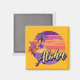 Ilustração retrógrada de verão com design de texto e palmeira "Aloha", flores tropicais, decoração solar, marítima e arco-íris para amantes de verão