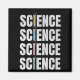 Ilustração colorida com o design de texto "Science, Science, Science, Science" e decoração de tubos de ensaio coloridos