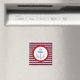 Design náutico com decoração da âncora desenhada à mão sobre fundo riscado a azul, vermelho e branco