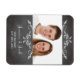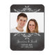 Faça seu anúncio de casamento com essas imã salve o dia de moda e moda. Design apresenta um fundo de quadro negro com texto definido em caracteres de estilo semelhantes a giz. Suas fotos são adoradas com um par de pergaminhos antigos. Doce, simples com uma dica de chic nostálgica, estas imã salve o dia servem como lembretes práticos, assim como guardas que comemoram o seu grande dia. Estas Imã salve o dia combinam com Vintage, Cinzas românticas, Scroll Scroll Wedding Invices.