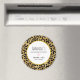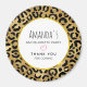 Um ímã de agradecimento de despedida de solteira com um padrão elegante. Manchas de leopardo preto exótico em um fundo dourado. Estilo selvagem e ainda elegante. Sobreposto no topo há uma moldura circular branca com uma borda de folha dourada falsa, com o seu texto personalizado dentro.