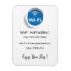 Personalize com seu nome de rede e senha, bem como a mensagem para visitantes. Editar Design para alterar a cor de fundo.